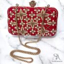 Featuring beautiful Red Embellished Clutch. Prepare to be the center of attention. Every eye will be drawn to its captivating design, featuring intricate zardozi embroidery, bead and pearl work that exude sophistication. The vibrant red hue is both bold and alluring, making a striking statement wherever you go. This clutch’s meticulous craftsmanship, from the detailed embroidery to the elegant clasp, ensures it stands out as a symbol of opulence and style. This clutch promises to add a touch of regal charm and timeless beauty to your ensemble, making you the focal point of admiration.